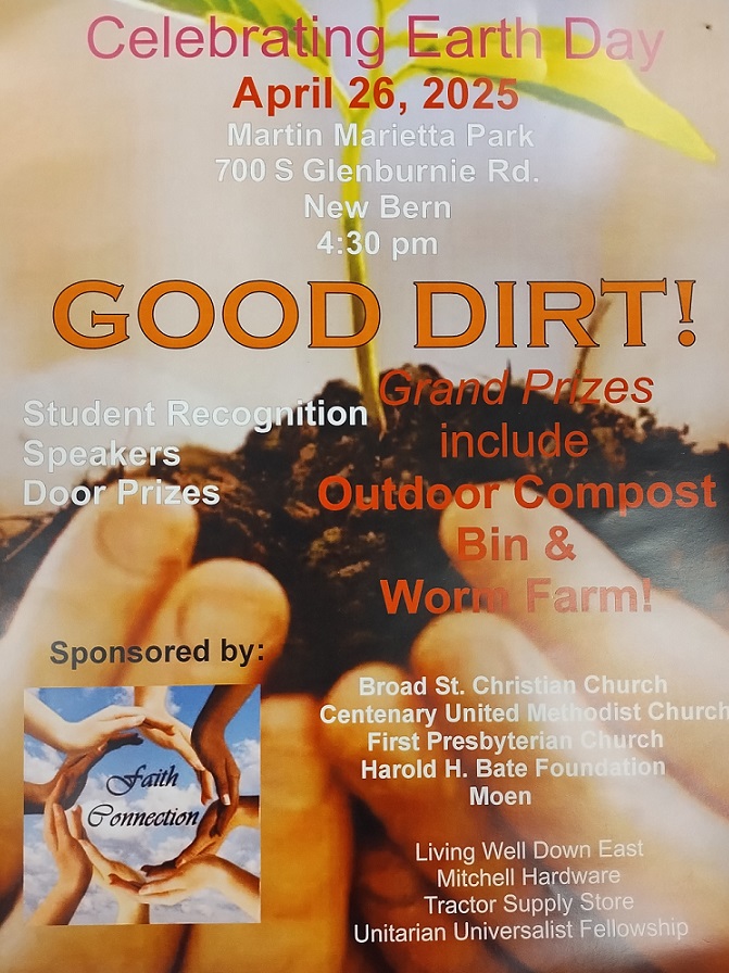 Carolina Nature Coaliton joined Faith Connection to celebrate Earth Day on April 26th at Martin Marietta Park in New Bern. This year, the celebration theme was Good Dirt!